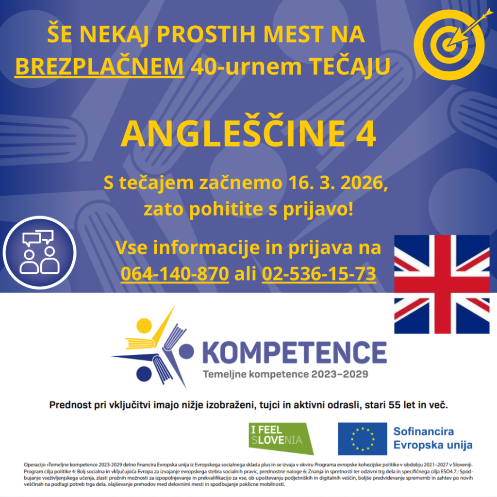 Tečaj angleščine 4 – prijave!